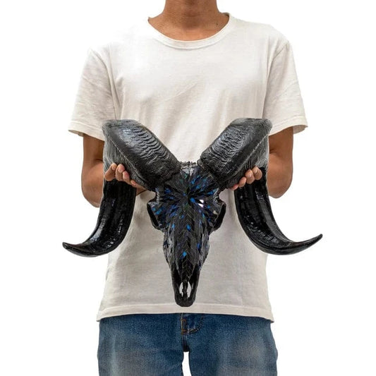 Blue Mirror Mosaic Ram Skull - Skull Bliss
