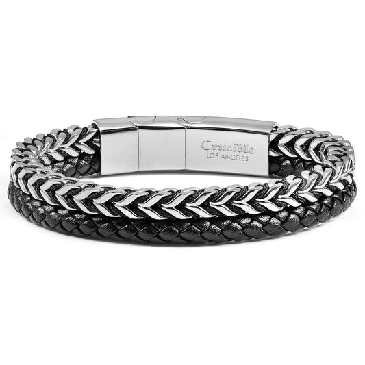 Crucible Stainless Steel Franco Chain and Leather Bracelet: GoldRegular price $36.00 USDRegular priceUnit price per-