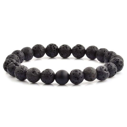 Crucible Skull and Onyx Stone Beaded Stretch Bracelet (8mm): BlueRegular price $18.00 USDRegular priceUnit price per-