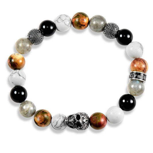 Crucible Skull Howlite and Mixed Stone Stretch Bracelet