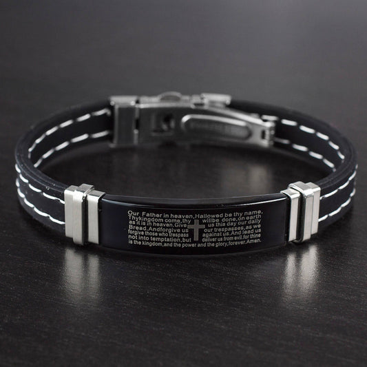 Lord's Prayer Black Plated Plate Stitched Rubber Bracelet