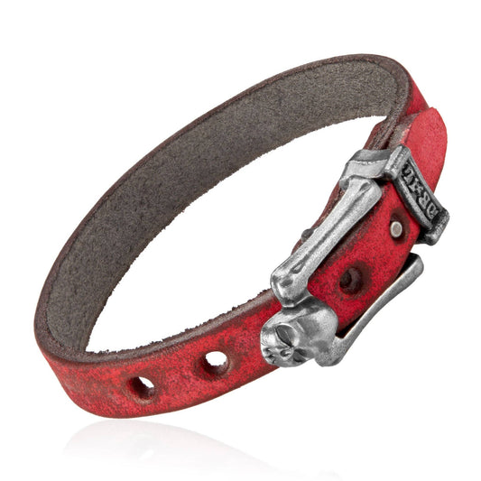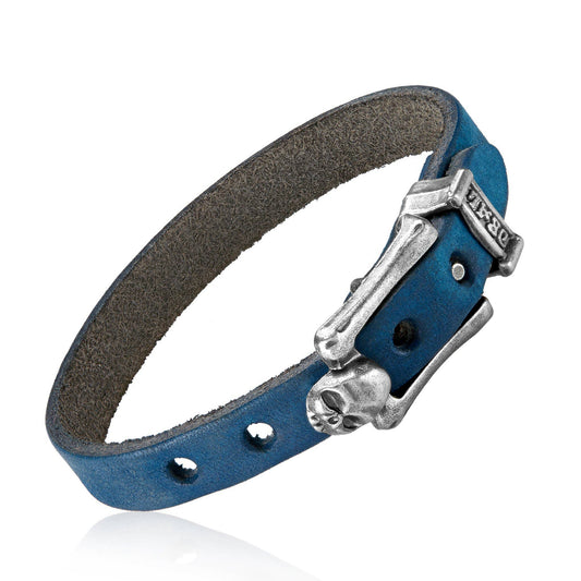 West Coast Jewelry - Men's Leather Skull Buckle Bracelet: Blue