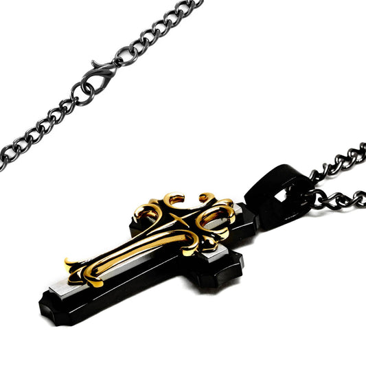 Invicta Jewelry Polished Layered Steel Cross Necklace - 24"