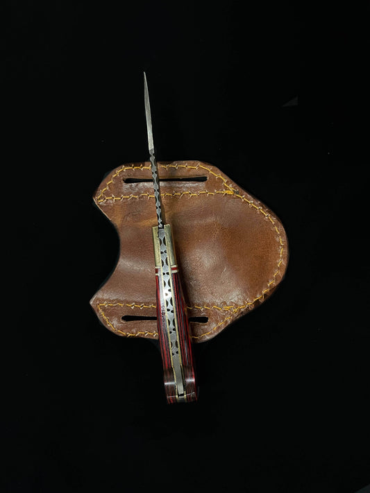 F #14 - Red Damascus Steel Folding Knife Limited Run /Pancake