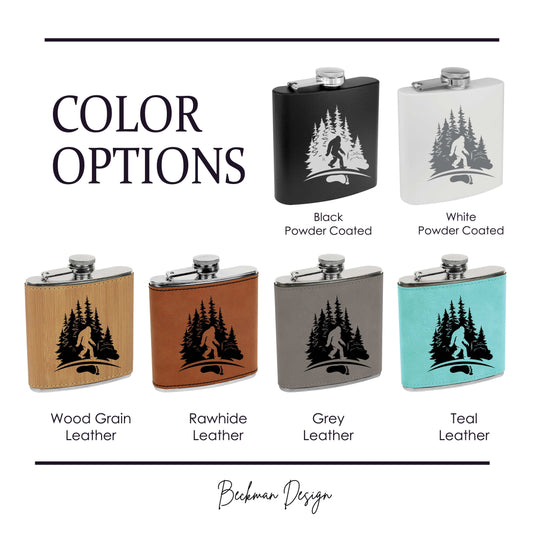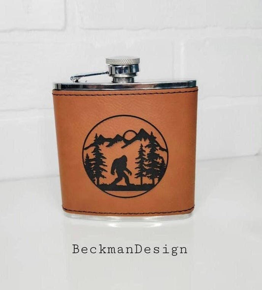 Beckman Design - Flask- Bigfoot In Forest: Leather / Gray