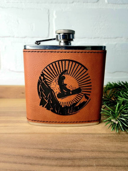 Beckman Design - Flask- Snow Boarding: Leather / Teal